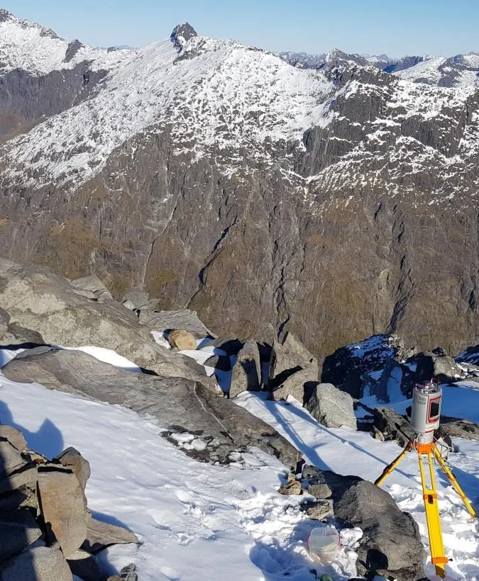 Figure 3: Scanning alpine terrain (which is only accessible by helicopter) in summer. (Image courtesy: Downer Ltd, Milford Road Alliance)